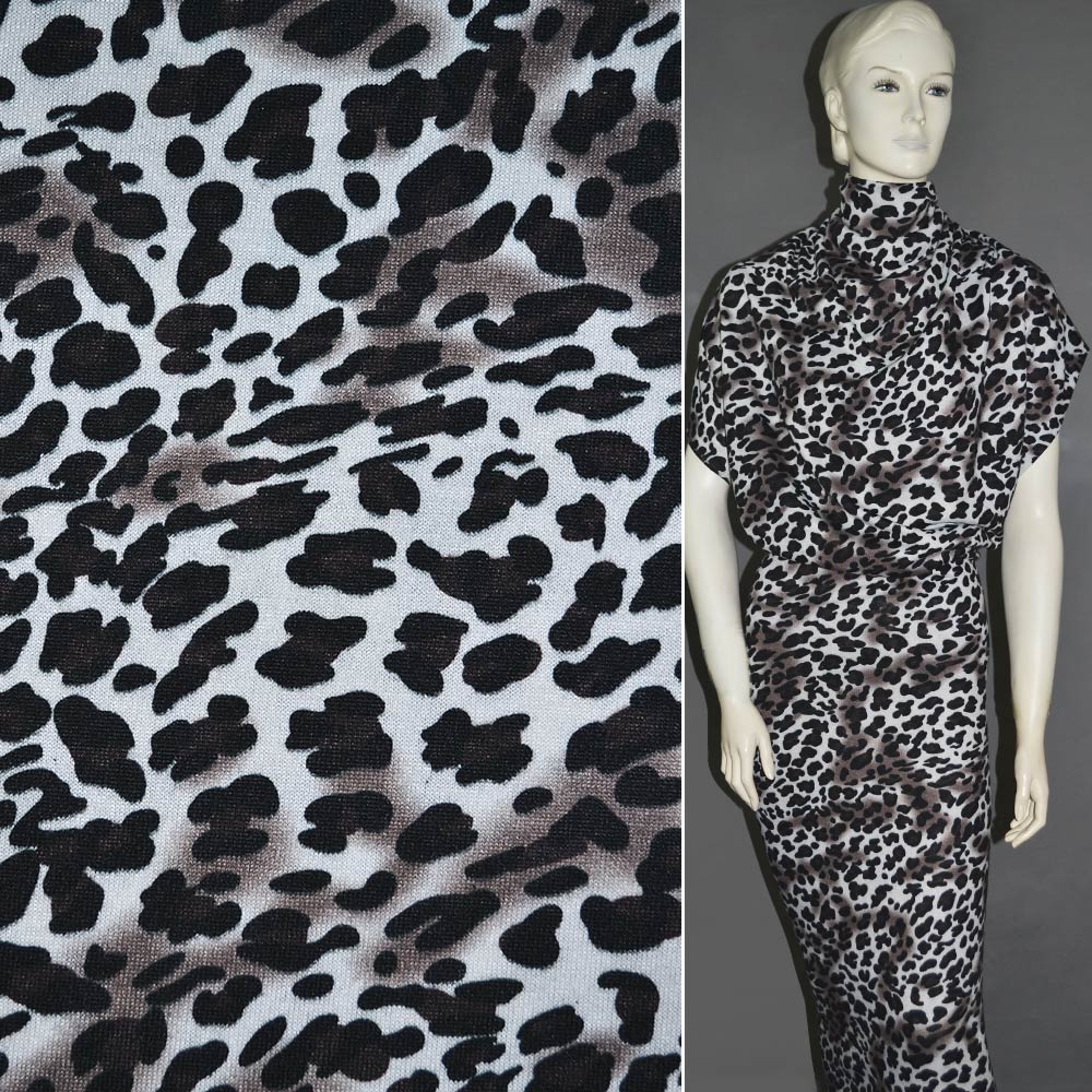 Трикотаж з шерстю молочний в чорний принт леопард ш.165 оптом
