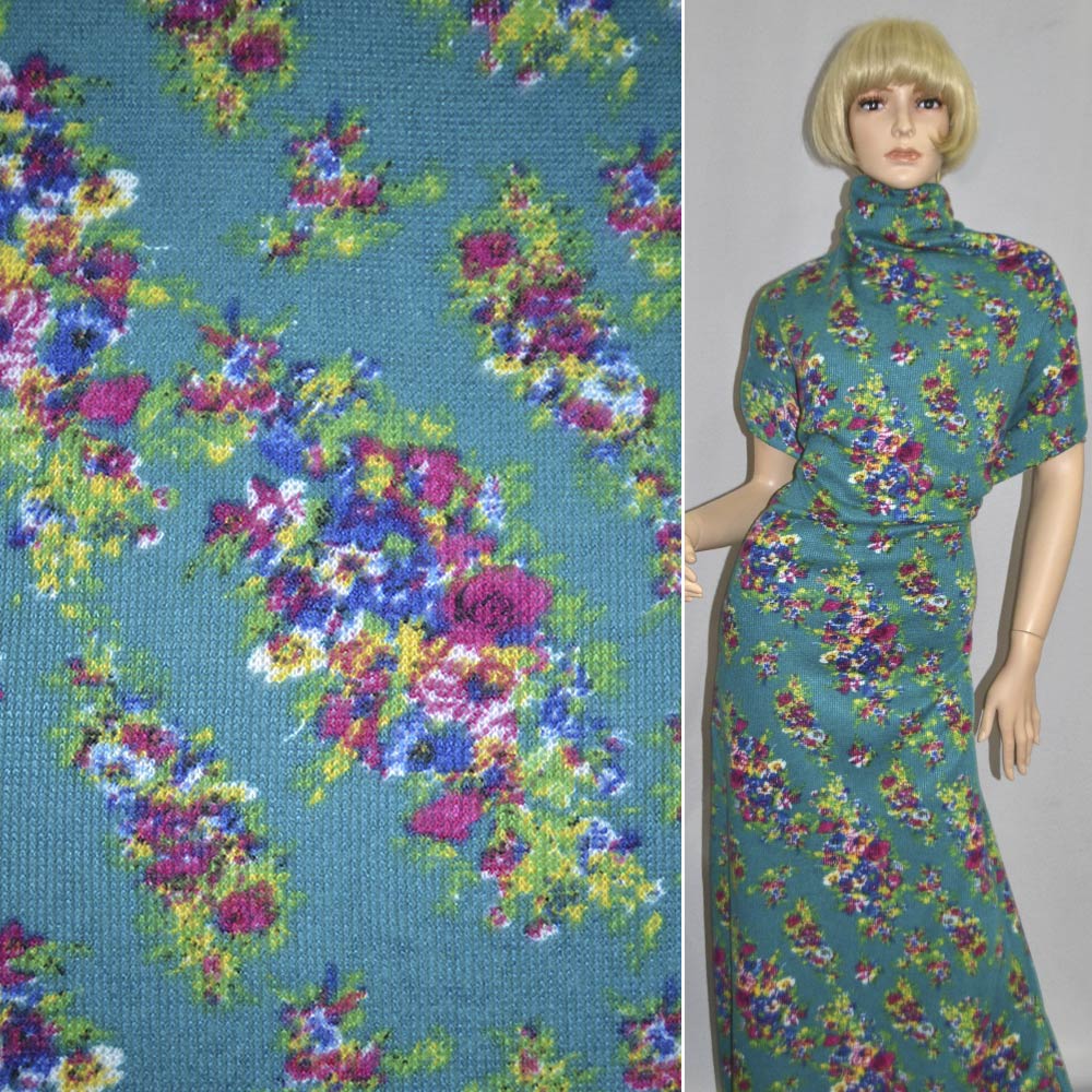 Опис Трикотаж з шерстю бірюзовий світлий з кольоровими квітами ш.165. Склад тканини: Віскоза-30, Поліакріл-40, Вовна-30. Щільність тканини 297 г/м.кв. Країна виробник: Південна Корея. Трикотаж – це м'яка щільна матерія, не прозора. Приємна на дотик, комфортна в носінні. Завдяки вмісту синтетичних матерій, матеріал більш зносостійкий та надовго зберігає свій первісний вигляд. Наявність вовни робить матеріал теплішим. Тканина відрізняється своєю приємною текстурою, гарною розтяжністю, практично не здається. Трикотаж досить простий у догляді. Використовується для пошиття суконь, спортивних костюмів, легких жакетів, поло, футболок та багато іншого.Дякуємо за ваш вибір.
