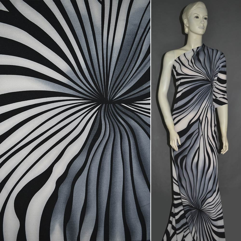 Трикотаж структурні штрихи великі сіро-біло-чорні смуги ш.160 оптом