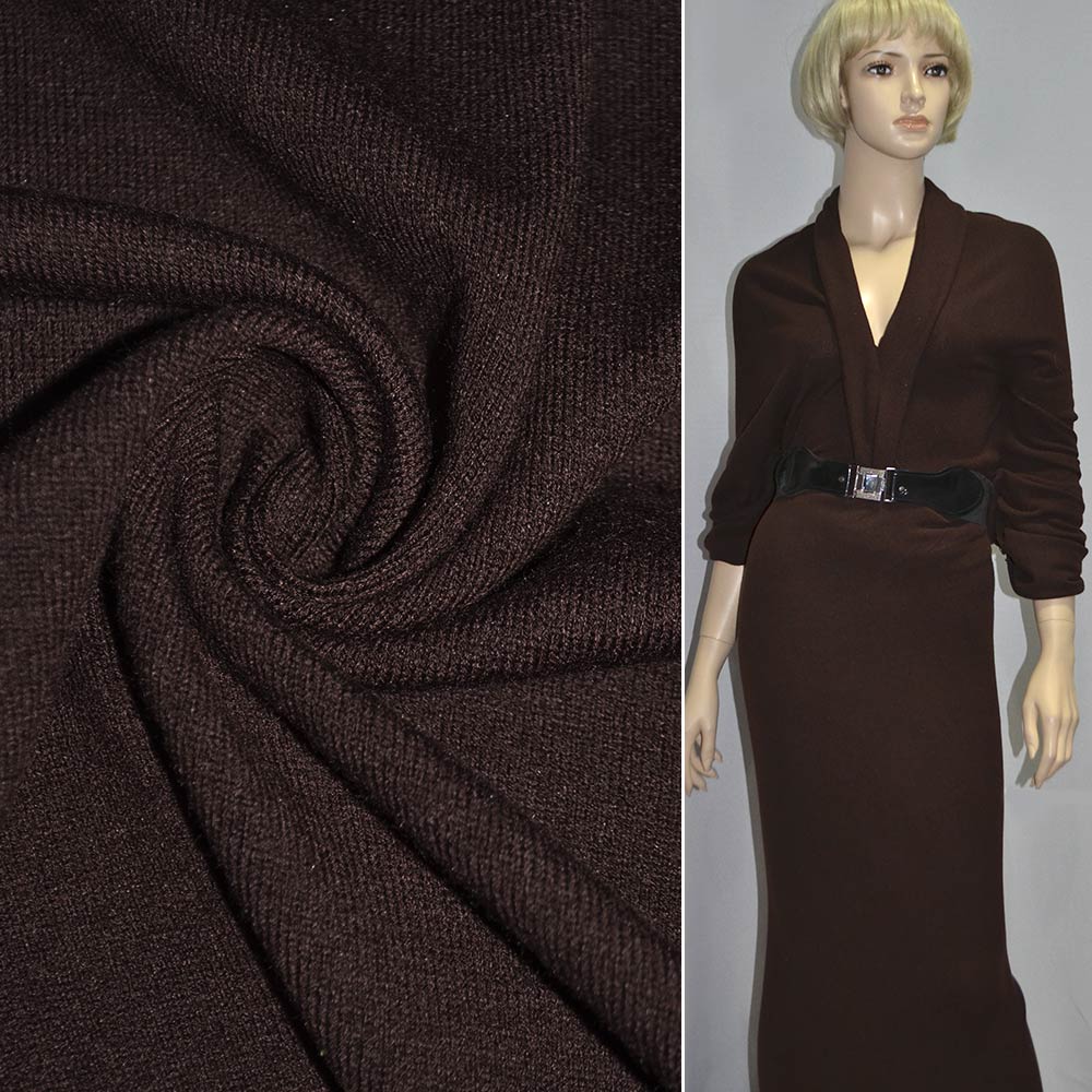 Опис Трикотаж шерстяний коричневий ш.150. Склад тканини: Поліакріл-50, Вовна-45, Еластан-5. Щільність тканини 310 г/м.кв. Країна виробник: Південна Корея. Трикотаж – це м'яка щільна матерія, не прозора. Приємна на дотик, комфортна в носінні. Завдяки вмісту синтетичних матерій, матеріал більш зносостійкий та надовго зберігає свій первісний вигляд. Наявність вовни робить матеріал теплішим. Тканина відрізняється своєю приємною текстурою, гарною розтяжністю, практично не здається. Трикотаж досить простий у догляді. Використовується для пошиття суконь, спортивних костюмів, легких жакетів, поло, футболок та багато іншого.Дякуємо за ваш вибір.