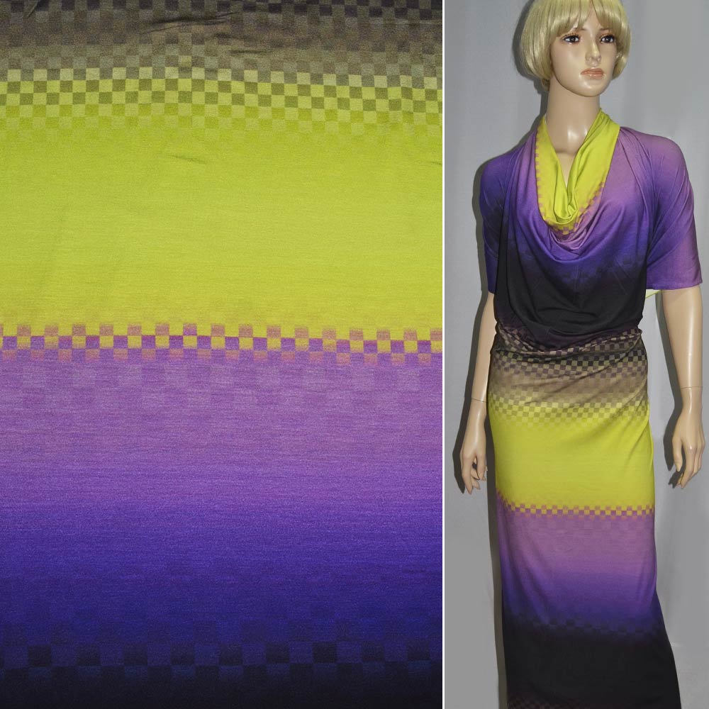 Трикотаж віскозний стрейч салатова, бузкова, чорна смужка рапорт ш.149 оптом